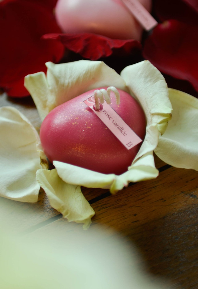 Roméo diffuse un parfum délicat de rose vanillée, chaud et enveloppant, qui invite à ralentir et savourer l’instant.